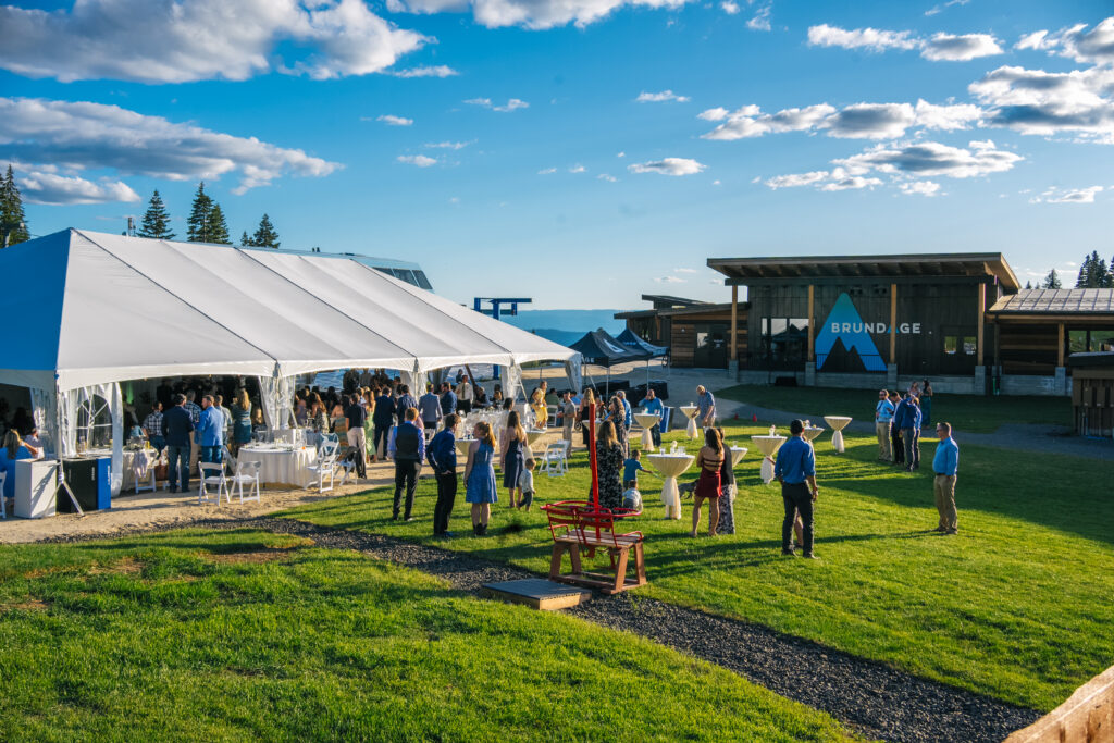The brand new Bluebird Pavilion tent located adjacent to the new Mountain Adventure Center and Bluebird Chairlift offers 3200 square feet of covered space, tables & chairs, dance floor, catering and bar, and space for a DJ or band. Your unforgettable reception is located at the base area of Brundage Mountain with easy access to parking, the Bridal Party quarters and restrooms.